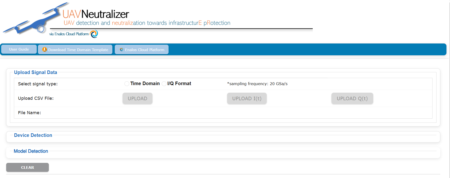 The UAVNeutralizer project aims to create an innovative, intelligent system capable of detecting and neutralizing malicious UAVs (e.g., drones), to ensure the protection of critical infrastructures. This application allows users to upload RF signals for classification into specific categories and models based on RF fingerprints.